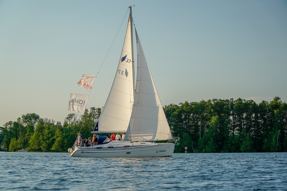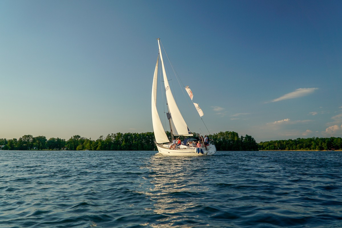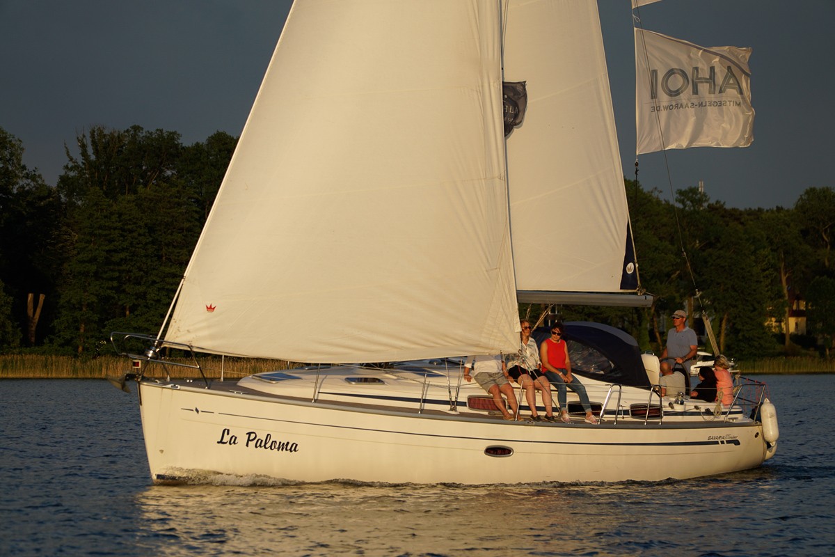Das Sunset-Sailing ist immer wieder ein wunderbarer Tagesausklang. Gestartet wird um 18 Uhr in Bad Saarow. Bis zu 10 Personen und der Skipper können dabei sein. Unter Motor geht es aus dem Hafen. Schon bald werden die beiden Segel gesetzt. Dann gleitet die 10 Meter lange Segelyacht über den See. Wer Lust hat, kann selbst am Ruder stehen.